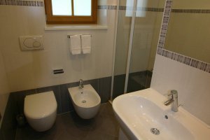 - Bagno con finestra, doccia, WC, bidè e lavabo